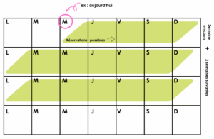 Pour rappel : toutes les réservations peuvent s’effectuer pour la semaine en cours et les deux semaines suivantes.